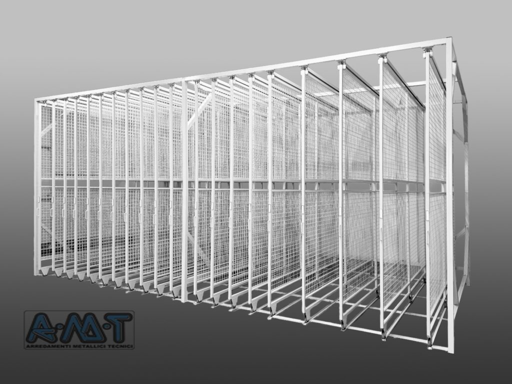 La struttura è formata da pannelli in rete metallica verniciata con polveri epossidiche. Tutti i pannelli scorrono su guide, nella parte superiore su rulli e nella parte inferiore su ruote. Per ottimizzare lo scorrimento le guide inferiori sono fissate al pavimento.